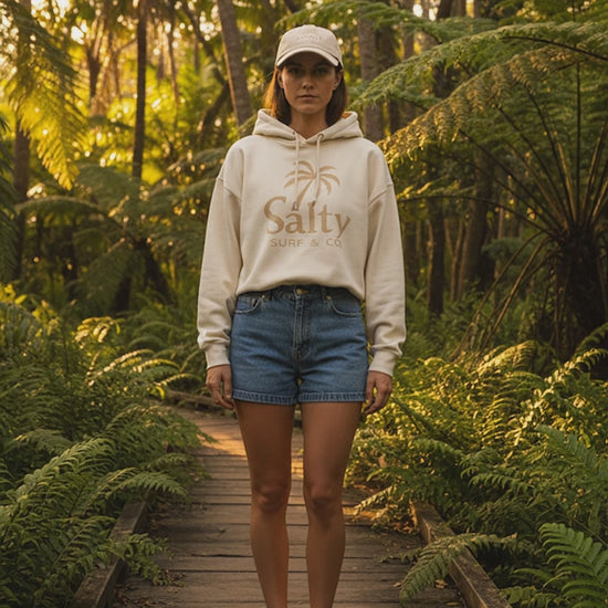 The Salty Surf & Co. Women’s Premium Coastal Hoodie brings that classic New Zealand surf-coast vibe. Made from 100% premium cotton, it’s crazy soft, breathable, and perfect for throwing on after a surf, a swim, or a long beach day. Slouchy, snuggly, and dangerously comfy—don’t be surprised if you never take it off.