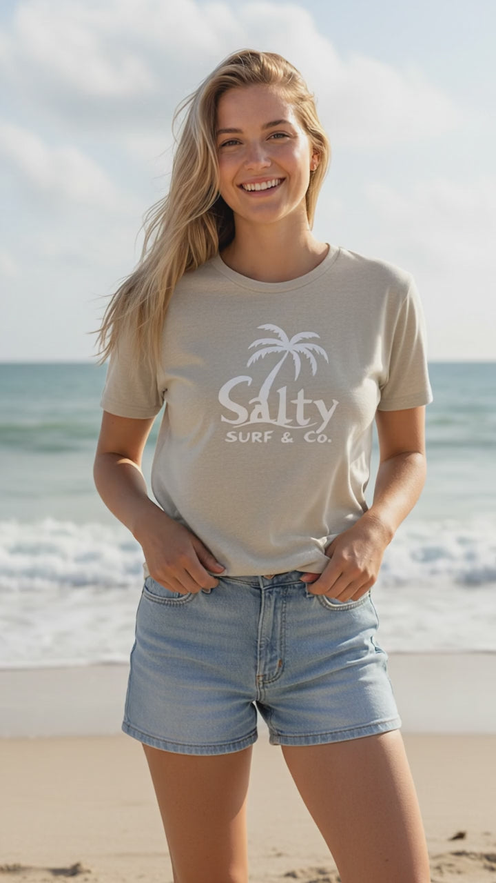 The Salty Surf & Co. Women’s Premium Coastal Tee captures the effortless spirit of the New Zealand coast. Crafted from 100% premium cotton, it’s soft, breathable, and perfect for warm days or laid-back evenings.